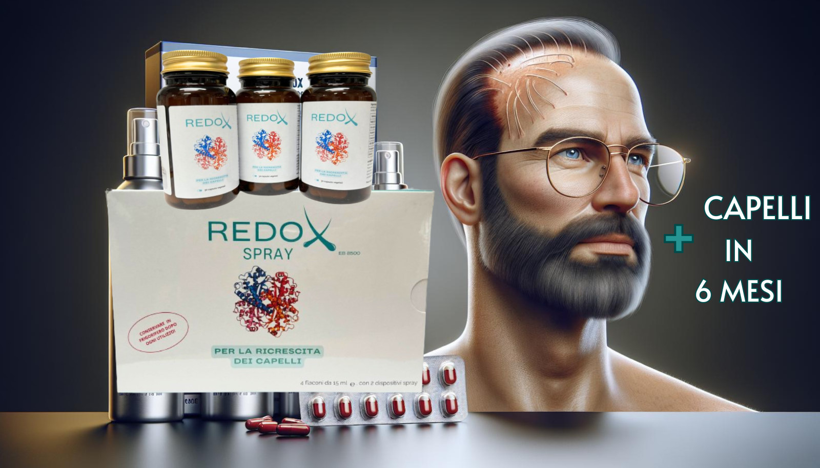 Lo spray e l'integratore REDOX offrono una soluzione completa e scientificamente supportata per la ricrescita dei capelli e il benessere personale, migliorando la salute del cuoio capelluto e fornendo i nutrienti necessari per capelli forti e sani.